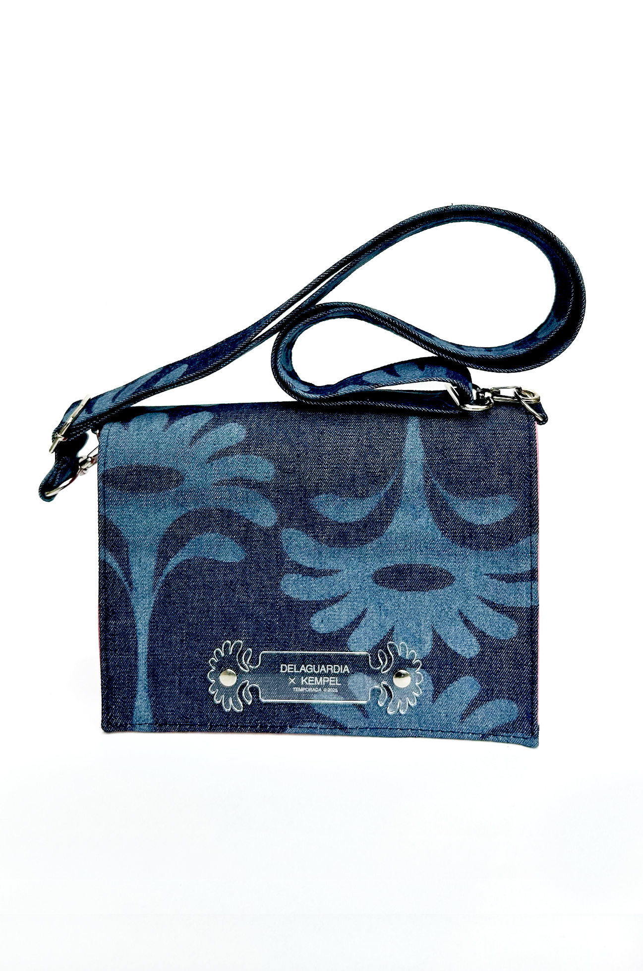 Delaguardia x KEMPEL es nuestra nueva colaboración de carteras artesanales. Confeccionadas en cuero vegano, charol y forradas en denim con nuestro clásico patrón de MARGAS. Es una pieza de diseño versátil, es crossbody & clutch, la podés usar con cadenita para un look más nochero, o con correa de denim para un look más urbano.