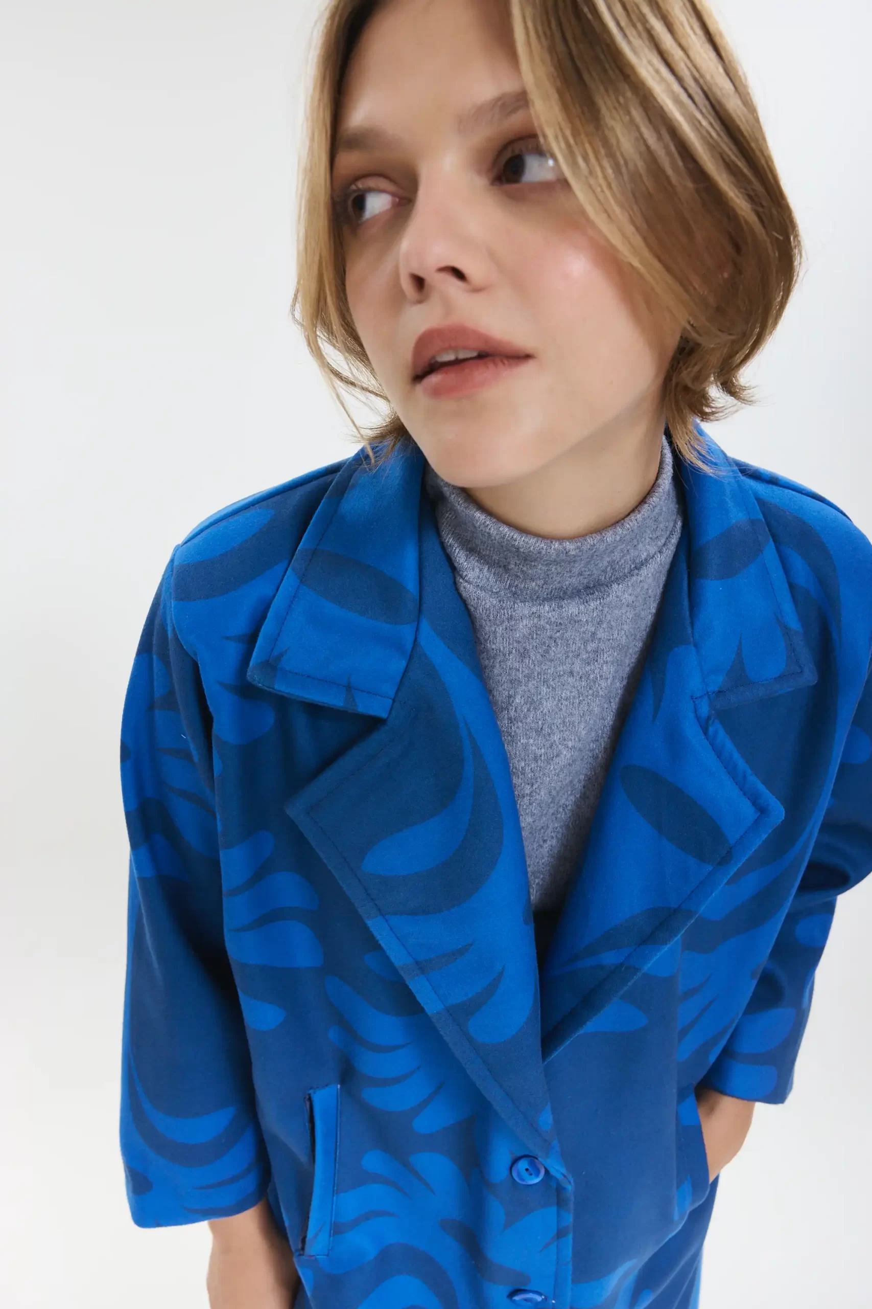 Bolsillo ojal en ambos laterales. De tacto suave y abrigado.